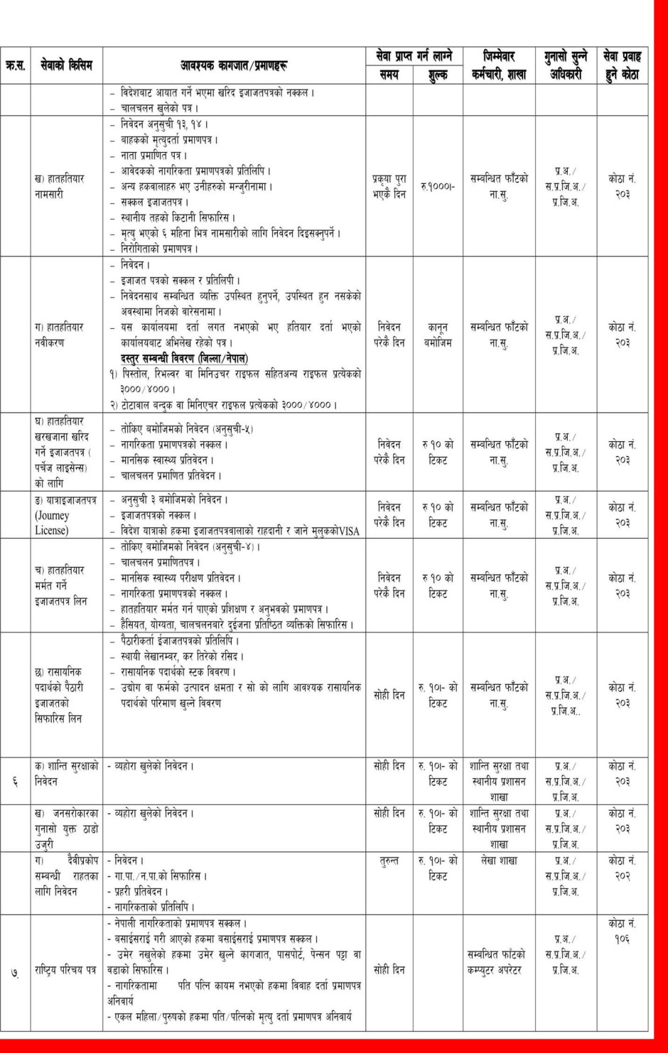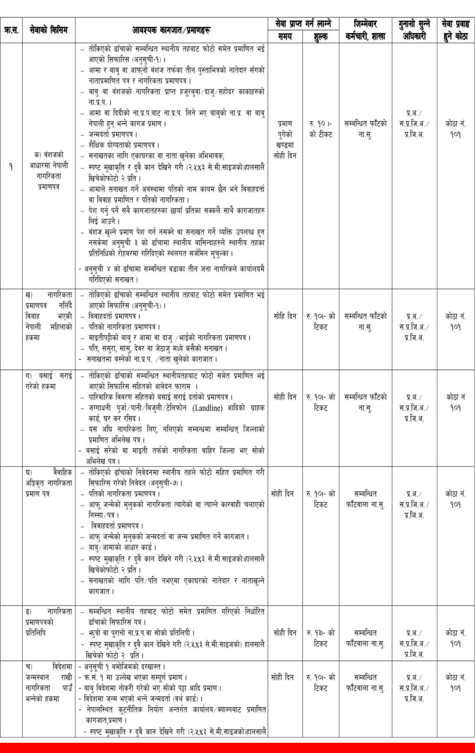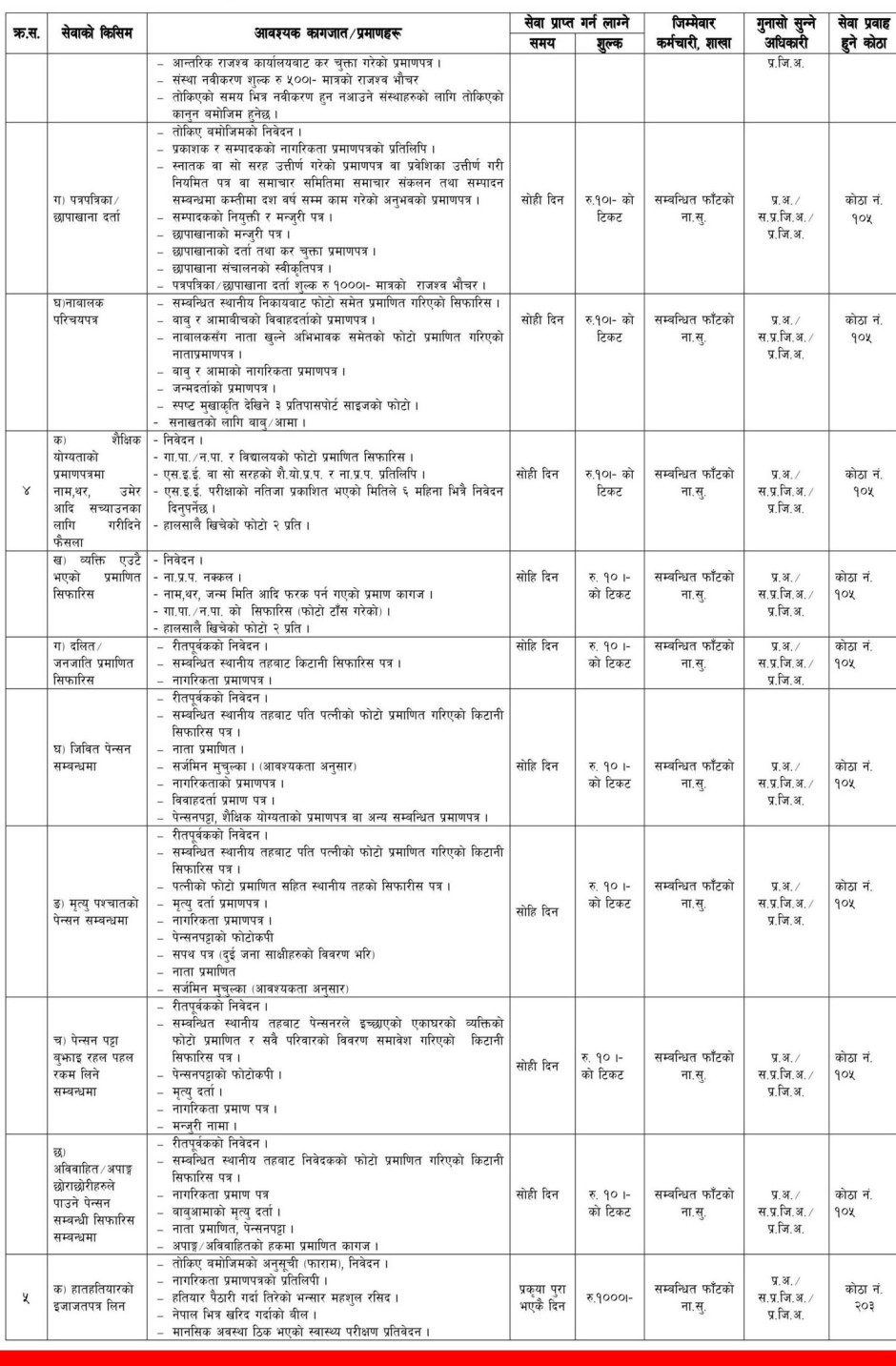 जिल्ला प्रशासन कार्यालय, पर्वतमा सेवा लिदा आवश्यक पर्ने शाखागत संक्षिप्त बडापत्र