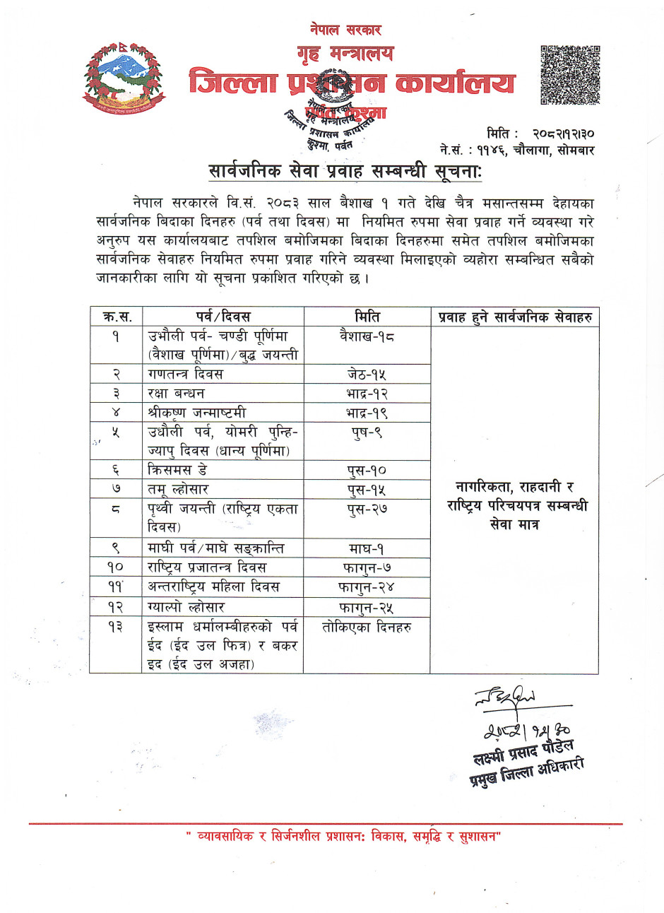 © सर्वाधिकार सुरक्षित जिल्ला प्रशासन कार्यालय, पर्वत